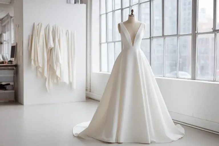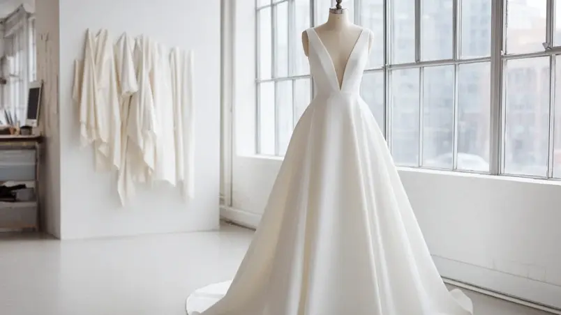 Crepe i sin töjbara variant ger en slät, matt yta som fångar ljuset mjukt. Jämfört med glansig charmeuse, som redan nämnts ovan, döljer crepe småveck bättre och behåller formen genom hela dagen. Satäng med tyngd är det andra populära valet, särskilt i plisserade A-linjeklänningar där tyget faller tungt och rakt. Båda materialen fungerar året runt, men crepe andas något bättre vid sommarbröllopet medan satäng ger mer värme under höst och vinter.